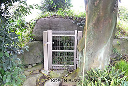 富士市三ツ沢、愛鷹山西側の台地南端部に位置する円墳で、一色古墳群に属しています。現在、実円寺古墳公園として復元整備されてます。 墳丘規模は、径19m、高さ5.8m測ります。埋葬施設は、全長9.5mの無袖式横穴石室で、入り口に一枚石を立てた床面から90cmほどの壁状構造物があり、上部が羨道部となっている。また、この壁状構造物の南側に、この石を支えるように人頭大の石が石室幅で1㎥程詰め込まれていました。築造年代は、6世紀後半と推定される。